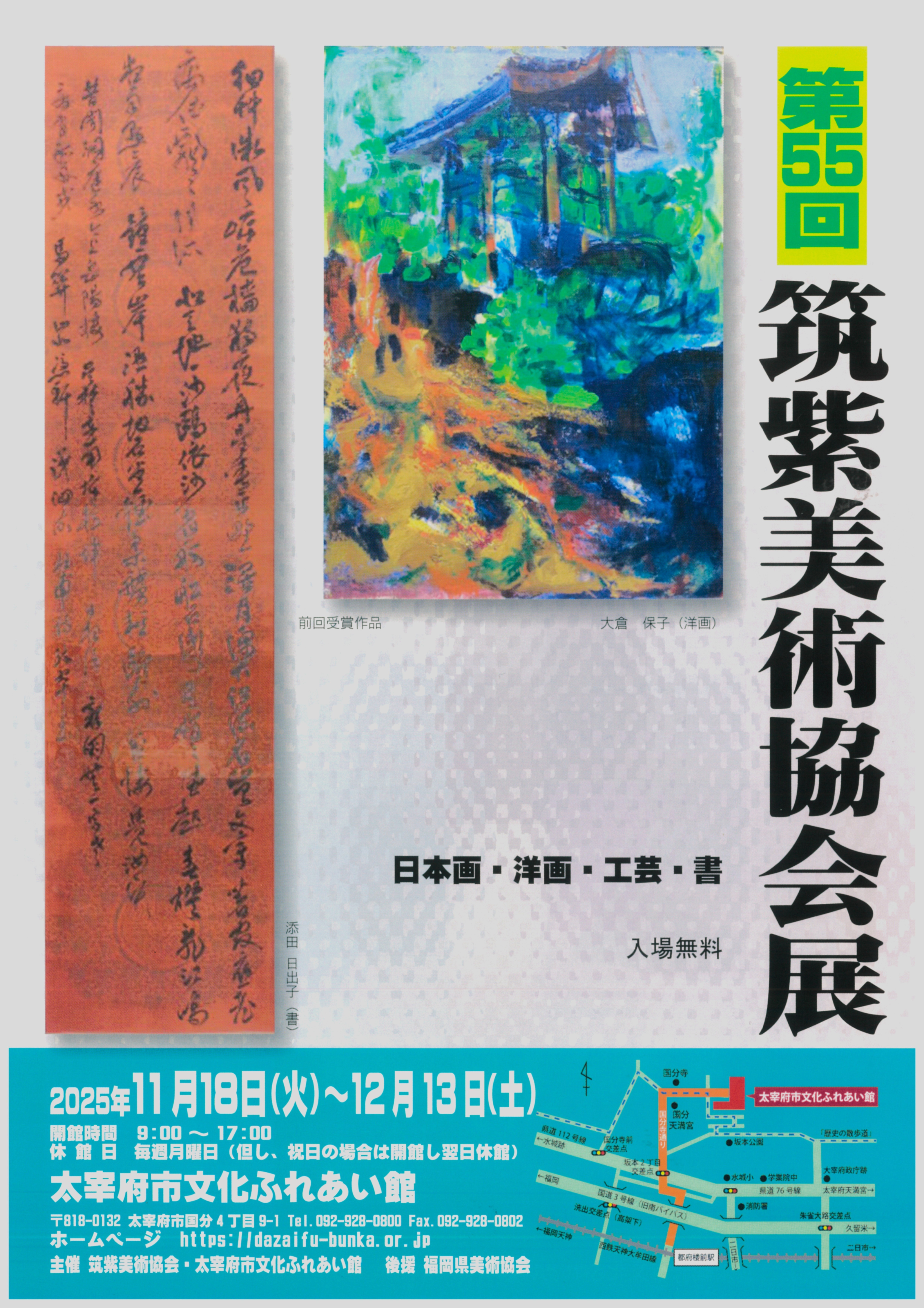 筑紫美術協会の会員による、日本画・洋画・工芸・書の4部門の作品展です。