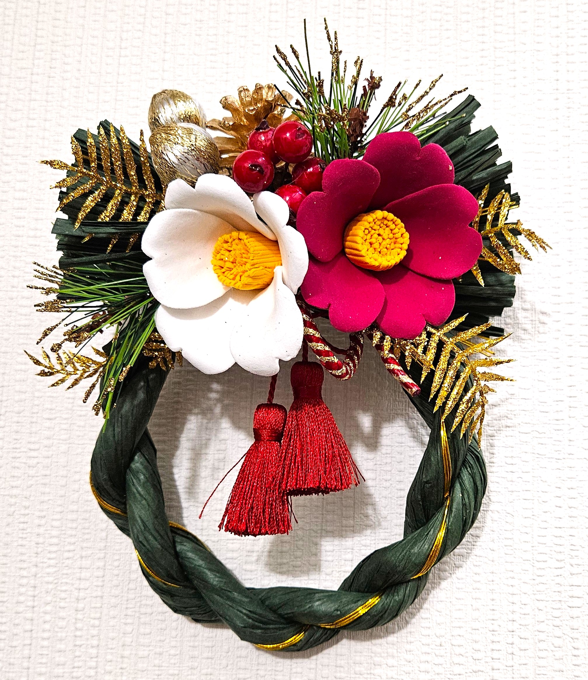 手軽に楽しめる柔らかい色付き粘土で花を作り、和モダン風なお正月飾りに仕上げます。新しい年に彩りを添えましょう。
